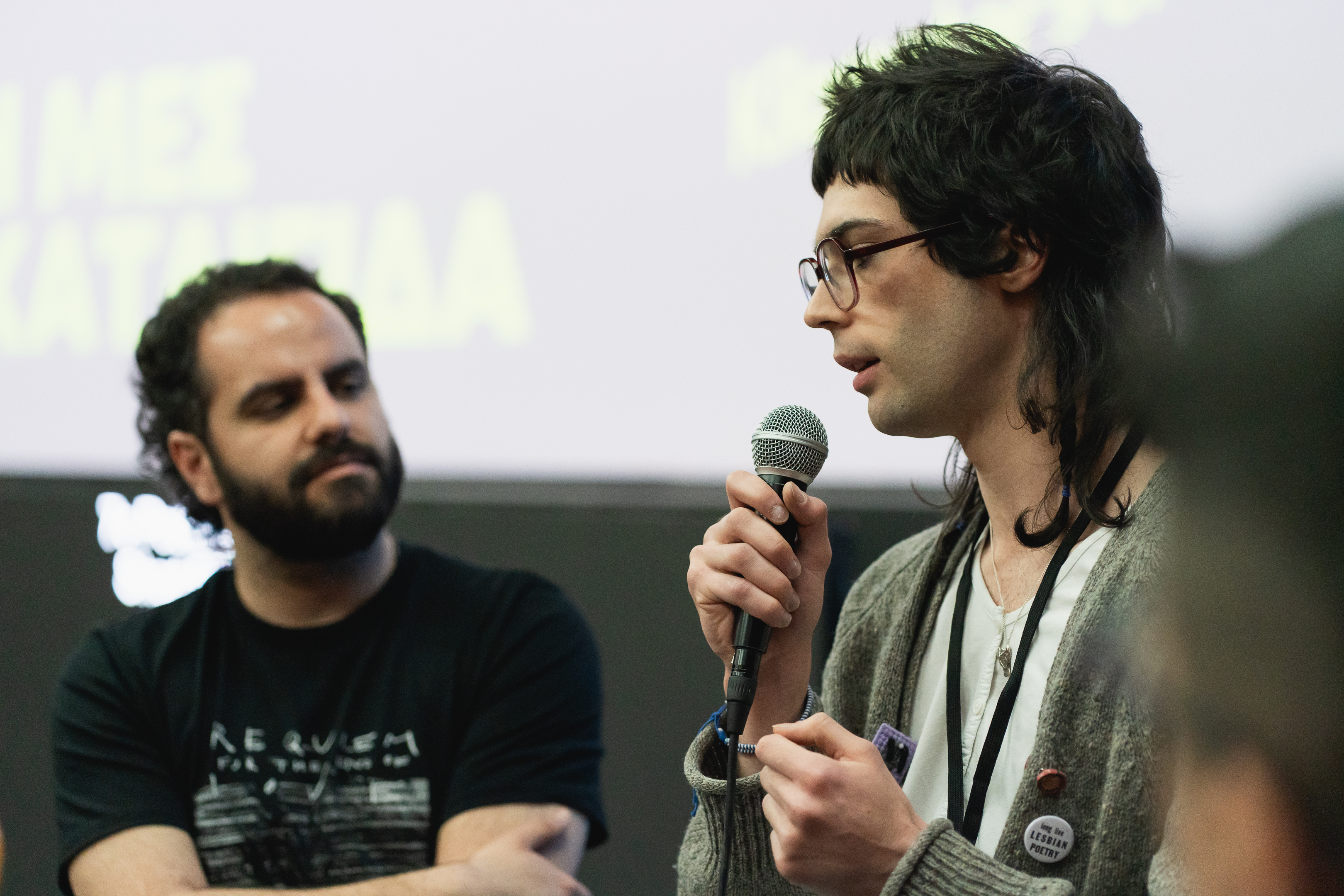 Η προβολή “Χτίζοντας Πάνω σε Ερείπια” αφιερώθηκε στην Amen Sahraei, Ιρανή σκηνοθέτρια της ταινίας A Private Message, που δεν κατάφερε να παρευρεθεί στο φεστιβάλ λόγω τραυματισμού της κατά τους βομβαρδισμούς του Ιράν. Στεκόμαστε δίπλα της και δίπλα σε όλα τα αθώα θύματα του πολέμου. Δηλώνουμε δυνατά και ξεκάθαρα ότι αυτός δεν είναι δικός μας πόλεμος, αυτός είναι ένας πόλεμος του καπιταλισμού και της λευκής υπεροχής και πρέπει να κάνουμε ο,τι μπορούμε για να τον σταματήσουμε και να εμποδίσουμε τη μηχανή του πολέμου, τόσο στις χώρες μας, όσο και εκτός αυτών.