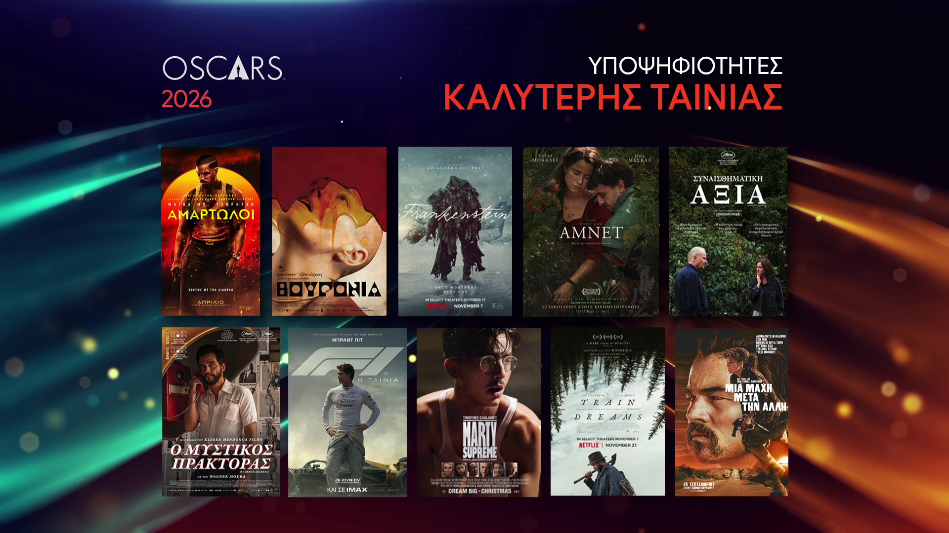 Αν κάτι ξεχωρίζει από τη φετινή οσκαρική χρονιά είναι η ποικιλία των κινηματογραφικών φωνών: από μεγάλες αμερικανικές παραγωγές («Μία Μάχη μετά την Άλλη», «Αμαρτωλοί», «F1») μέχρι τις πιο προσωπικές ή πολιτικές διεθνείς ιστορίες («Συναισθηματική Αξία», «Ο Μυστικός Πράκτορας»), το σινεμά του 2025 αποτυπώνεται στις υποψηφιότητες με τρόπο πολυσυλλεκτικό και συναρπαστικό.