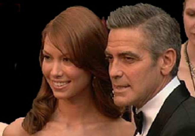 Ο Τζωρτζ Κλούνεϊ έφτασε, όπως πάντα λαμπερός και επίσημος, με κλασικό κοστούμι Τζιόρτζιο Αρμάνι (καινούριο, όπως είπε χαριτολογώντας) και tuxedo συνοδευόμενος από τη Σάρα Λάρσον, με την οποία βγαίνει τους τελευταιους μήνες. Γεμάτος κέφι αστειεύτηκε με τους δημοσιογράφους και δήλωσε ότι έφτασε νωρίς για να πιει ποτό.