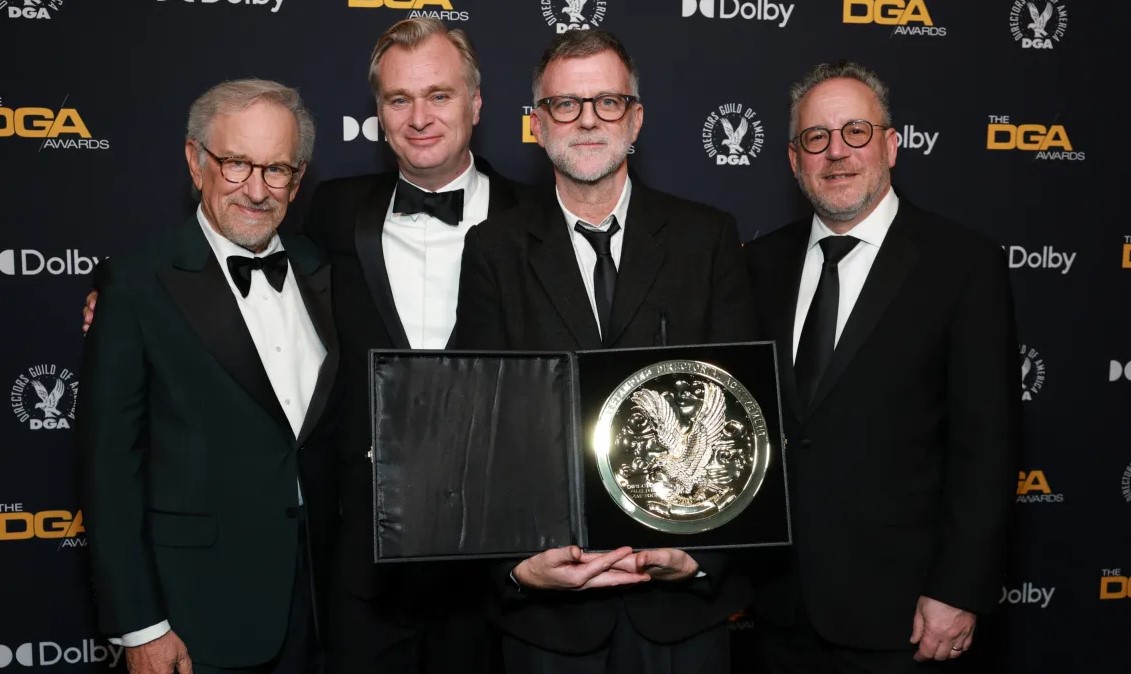 Όπως τα διαβάζουμε στο Hollywood Reporter πρέπει να ήταν μια ωραία βραδιά προχθές το Σάββατο στην γιορτή των Σκηνοθετών. Είχε ωραίο παρουσιαστή (τον συμπαθέστατο Κουμαΐλ Ναντζάνι), είχε την περίφημη πεντάδα του (PTA, Κούγκλερ, Ζάο, Τ. Σαφντί, Ντε Τόρο - η 5άδα των Όσκαρ με τον Μεξικανό εκεί να αντικαθίσταται, ακόμα καλύτερα, από τον Γιοακίμ Τρίερ), είχε τις ωραίες παρουσιάσεις των Σκηνοθετών από τους πρωταγωνιστές τους, είχε ωραίες ατάκες, όπως αυτή του Ναντζάνι που είπε παραλαμβάνοντας από τον Νόλαν στην επίσημη πρώτη του: «Ευχαριστώ Κρις Νόλαν που άνοιξες για μένα, είναι σαν όνειρο μέσα σε όνειρο μέσα σε όνειρο», προτού συνεχίσει με το «οι σκηνοθέτες είναι οι καλύτεροι στην επικοινωνία στον πλανήτη. Παίρνουν την πιο περίπλοκη ιδέα και την κάνουν κάτι που ενας ηθοποιός μπορεί να καταλάβει.» Ωραία πράγματα.